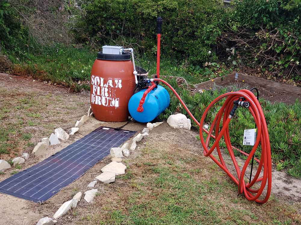 ABC Solar has been solar pumping water from day 1 of our founding 18 years ago. Our deep experience with solar DC water pumps is a key benefit in the design of the solar fire drum kit and systems. Our 12v demand pump can run dry and move water at sprinkler speed 40 feet up a tree. Call us today to learn more.
