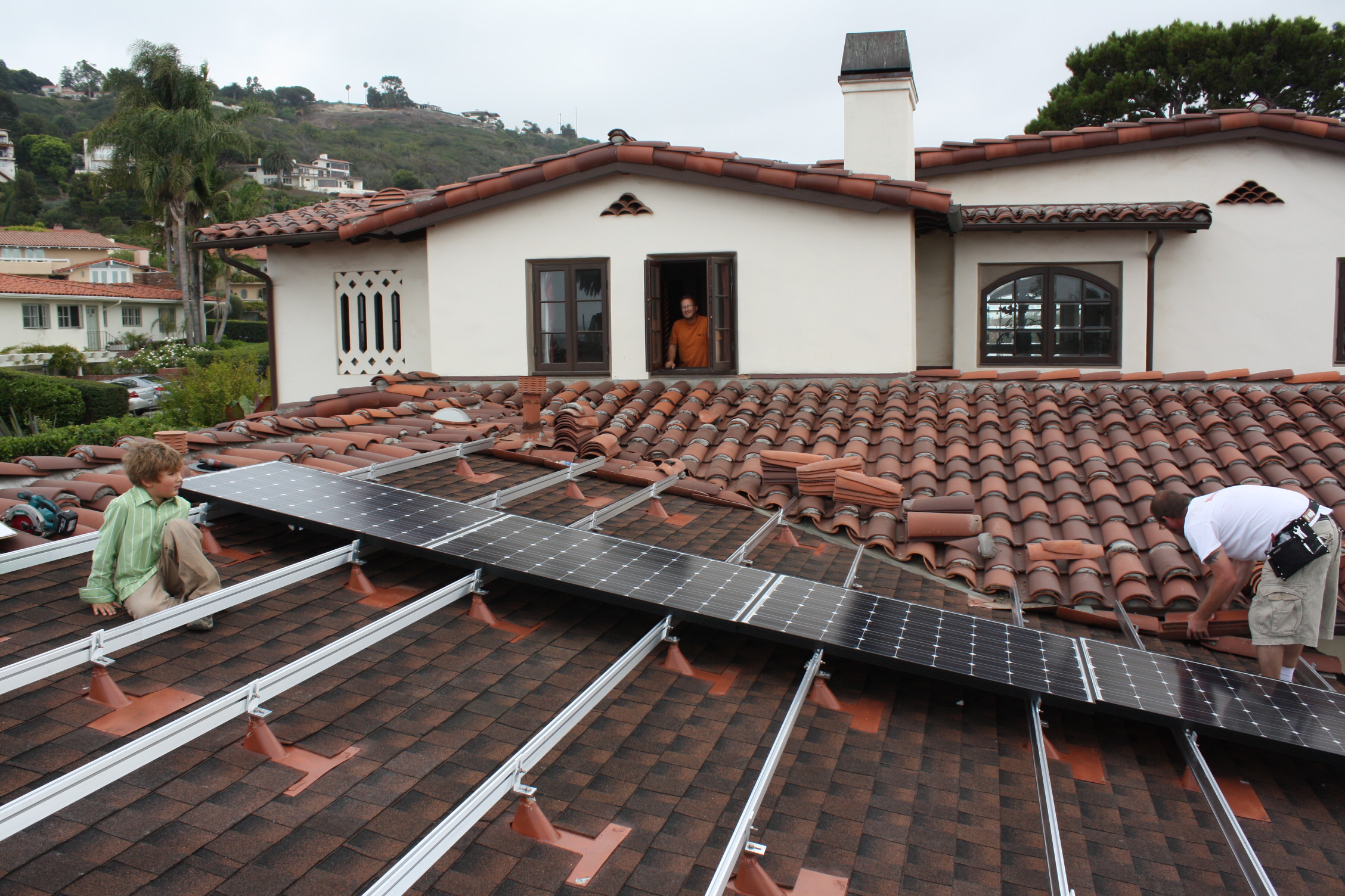 System Size DC: 5,880 DC Watts This system was designed with 30 Scucho Solar SPV 210 SMAU-1 210 watt panels at 14 panels per string connecting to a Sunnyboy 6000 watt DC/AC Inverter. This installation use the West roof surface with equal strings of 14. Permitting Issues: None, The City of Palos Verdes Estates have become solar friendly. Time of Use Metering? Yes. Time of Use Metering means that between 12 noon and 6 PM your electricity rate goes up dramatically. For solar producers this means every time you spin the meter backwards you are getting a credit at the much higher Time-of-Use (TOU) rate. |