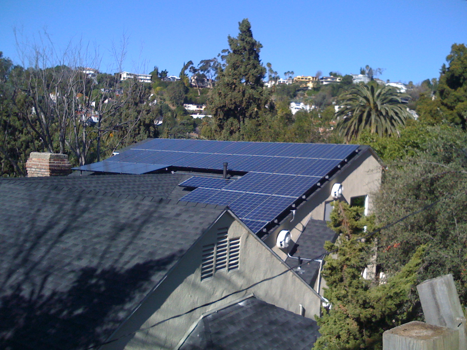 System Size DC: 6,480 DC Watts This system was designed with 36 Schuco Solar S 180-SPU-4 180 watt solar panels at 18 panels per string connecting to a Sunnyboy 6000 watt DC/AC Inverter. This installation use the South and West roof surfaces with equall strings of 11. Permitting Issues: None, The City of San Dimas was a pleasure to deal with. Time of Use Metering? Yes. Time of Use Metering means that between 12 noon and 6 PM your electricity rate goes up dramatically. For solar producers this means every time you spin the meter backwards you are getting a credit at the much higher Time-of-Use (TOU) rate. |