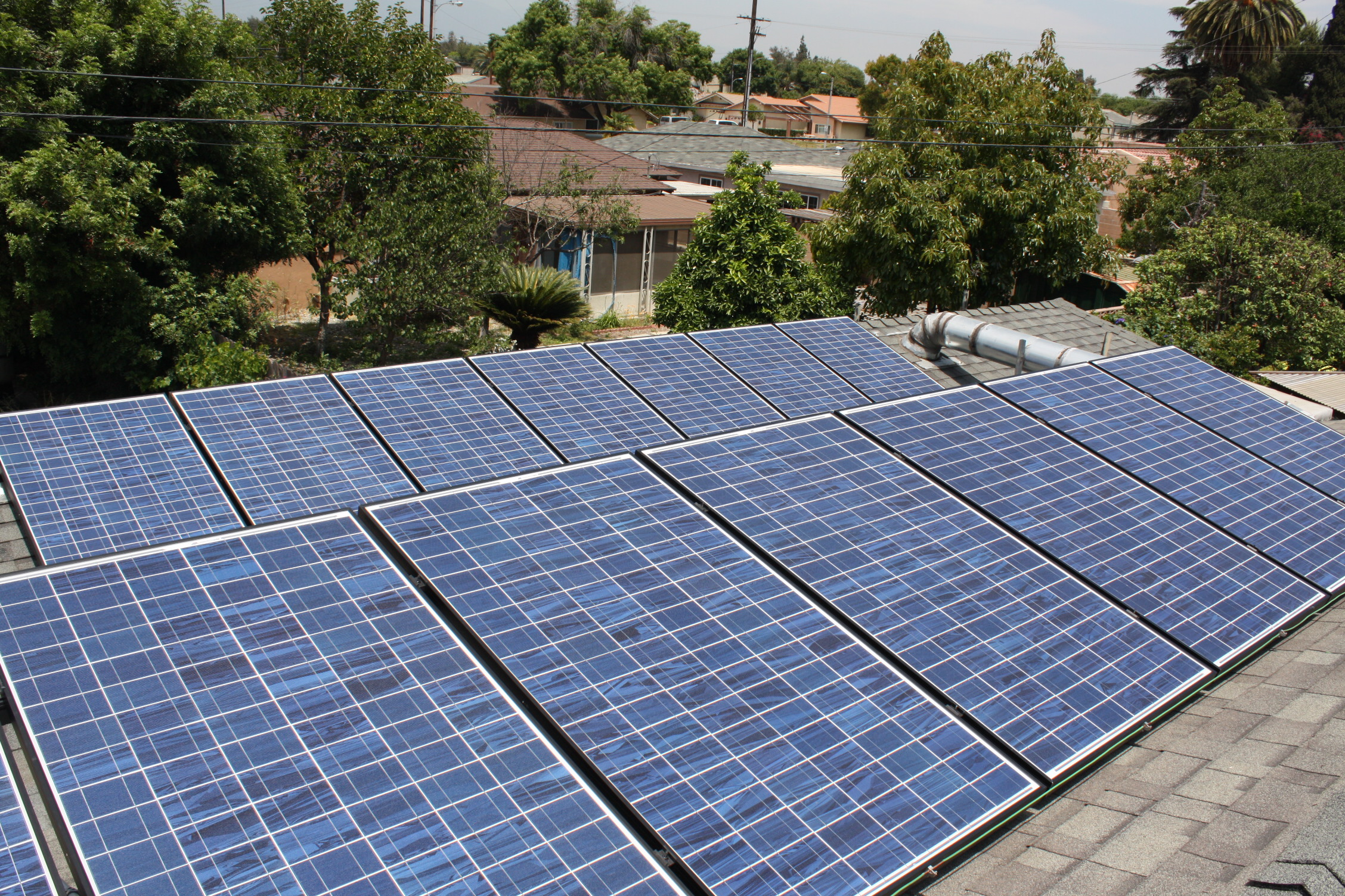 System Size DC: 3,600 DC Watts This system was designed with 18 Evergreen Solar ES-200-RL 200 watt solar panels with one string of 18 panels connecting to a Sunnyboy 3000 watt DC/AC Inverter. This installation use the South and West roof surfaces with equall strings of 11. Permitting Issues: None, The City of San Dimas was a pleasure to deal with. Time of Use Metering? Yes. Time of Use Metering means that between 12 noon and 6 PM your electricity rate goes up dramatically. For solar producers this means every time you spin the meter backwards you are getting a credit at the much higher Time-of-Use (TOU) rate.  |